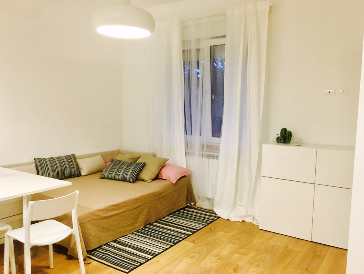 In piccola palazzina di sole sei unità abitative, proponiamo in affitto da Settembre a Giugno, grazioso appartamento situato su viale alcione, in zona zona ben servita dai mezzi pubblici e dai servizi. L’appartamento al primo piano, è composto da una zona cucina-living, con divano letto matrimoniale, un bagno e una ampia camera matrimoniale e ripostiglio. L’appartamento, ristrutturato di recente, è interamente arredato con cura e ben dotato. No spese condominiali.
